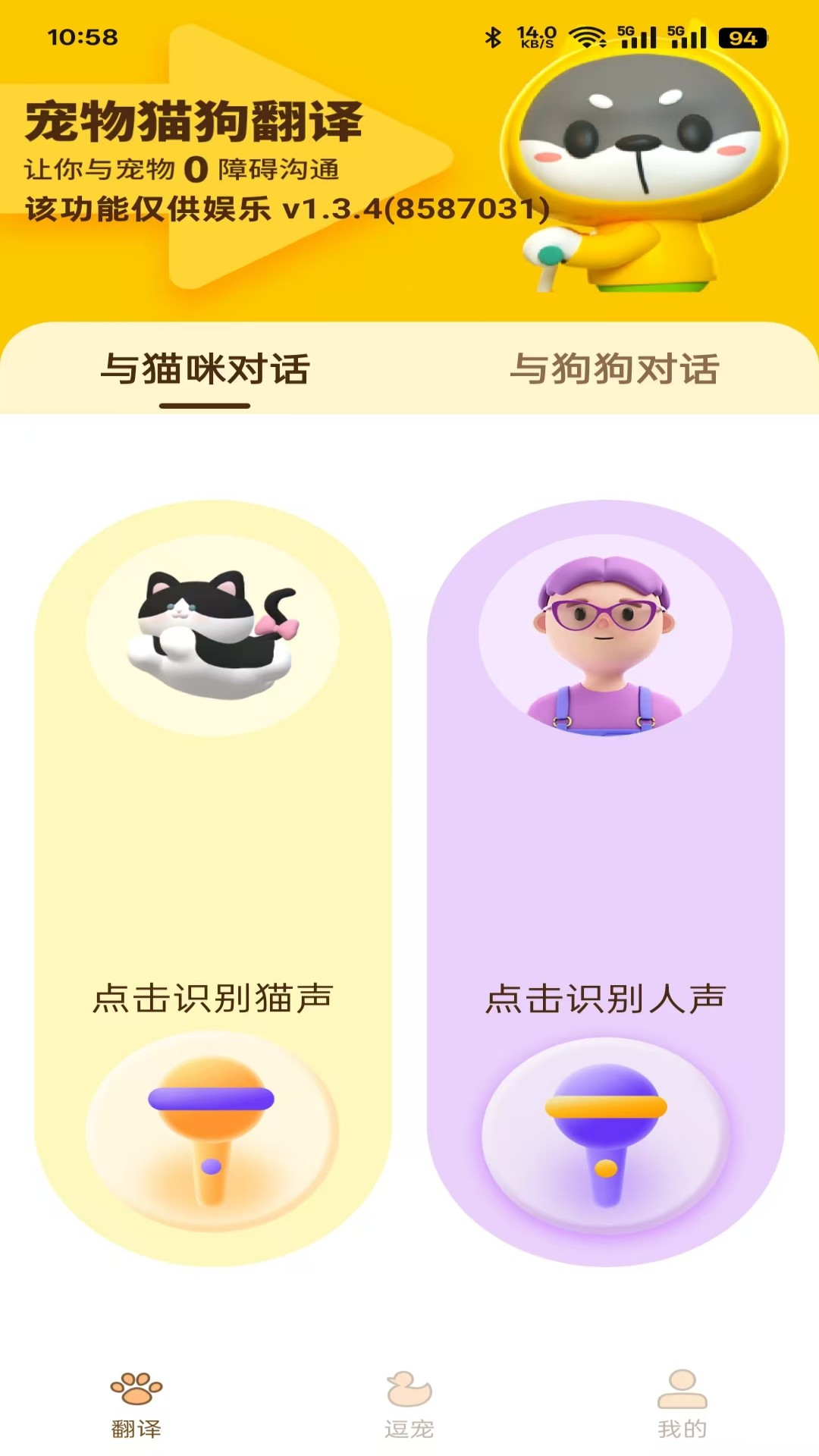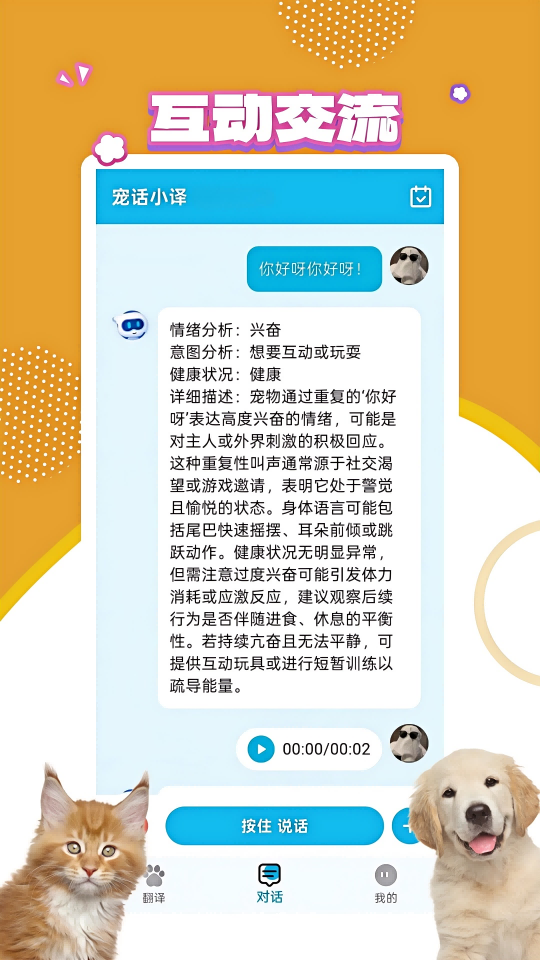 一款识别宠物语言的翻译工具,用于宠物语言翻译等